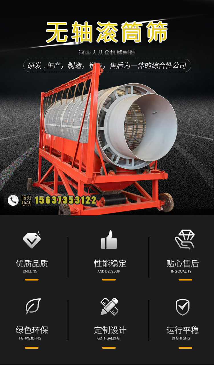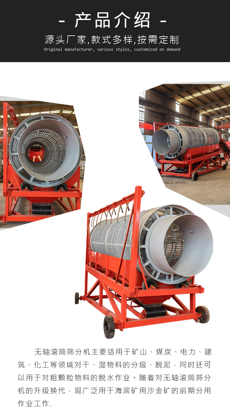 大型可移動(dòng)式雙層無軸滾筒篩大型沙場礦場煤炭礦石沙子篩分機(jī)篩石機(jī)