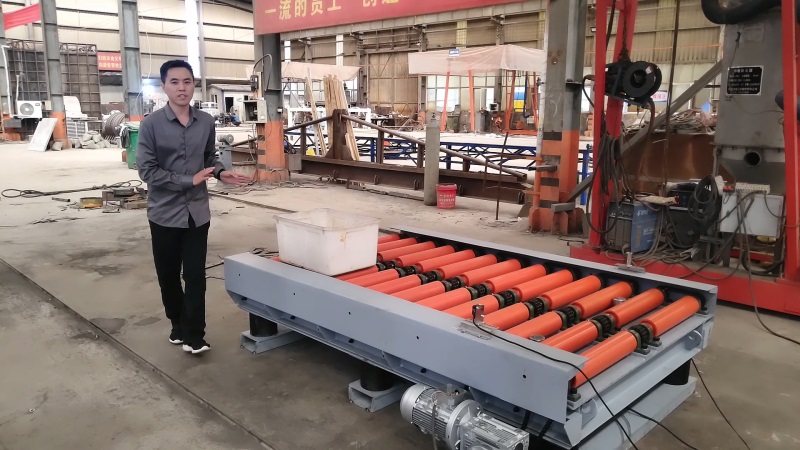 客戶定制滾軸多功能振動(dòng)輸送平臺(tái)1臺(tái),普鋼材質(zhì),承重:2000KG,板厚:14mm, 電機(jī):YZS20-4,1.1KW*4臺(tái), 電壓380V,50HZ。滾軸帶動(dòng)力;