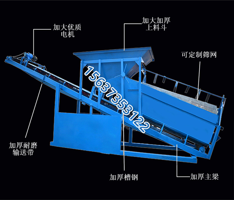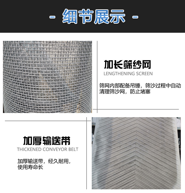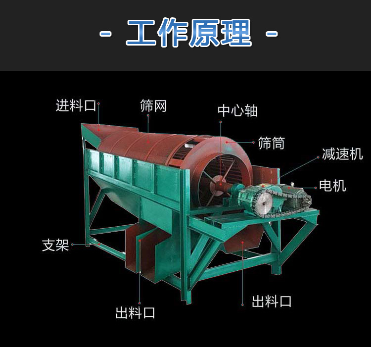 大型礦用滾筒篩與地面整體呈一定夾角的傾斜狀態。篩分滾筒以一定速度旋轉,物料通過篩分滾筒根據不同顆粒大小從上到下分離。滾筒篩的滾筒一般分為幾個部分,可根據具體情況確定。篩孔從小到大排列,每段篩孔直徑相同。