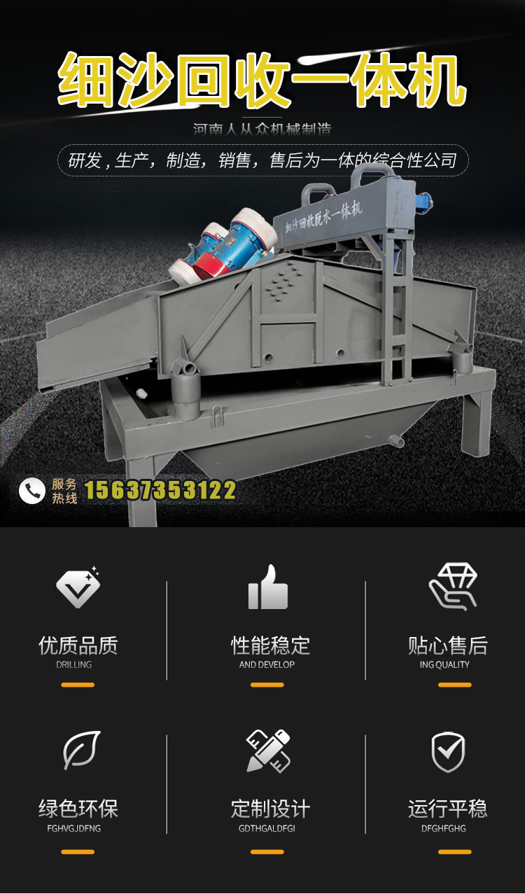 細(xì)砂回收脫水一體機(jī)可用于砂石料礦山的洗砂、選礦廠的尾礦干排等,其由電機(jī)、渣漿泵、旋流器zkr直線振動(dòng)篩、清洗槽、回流箱等組成,處理能力一般為10-100噸/小時(shí),可根據(jù)處理能力定制生產(chǎn).